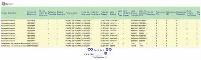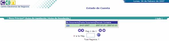 Visualizará  una tabla resumen con el listado de Estados de Cuenta históricos ordenados por  el Periodo contable. Para consultar el mensaje de su interés de clic sobre el  número del documento.