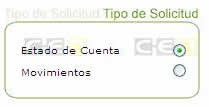 Seleccione el tipo de solicitud a realizar. En este criterio se tiene dos opciones: Estado de cuenta ó Movimientos.