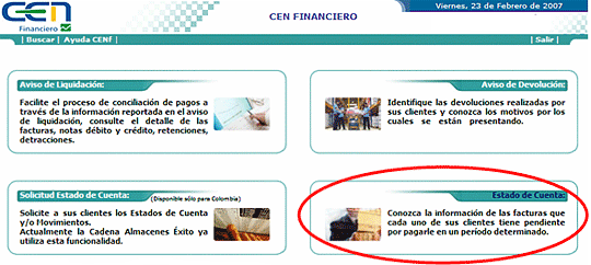 Seleccione del Menú Principal el documento Estado de Cuenta